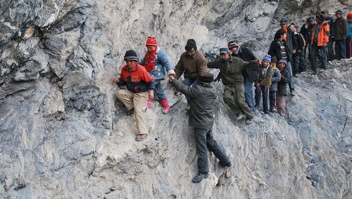 Esimerkiksi Kiinan Sichuanin maakunnassa on pieni kylä Gulu, jonka lasten on voitettava valtava etäisyys päästä kouluun. Jotta se olisi entistä helpompaa testi lapsille, aikuiset tekivät tiensä tunnelin läpi siten lyhentämällä polkua. Reitti itse tässä tapauksessa kuitenkin venyy sateen yli ja joissain paikoissa se ei ylitä kuusikymmentä senttimetriä. Kyläpoikien ja tyttöjen on voittaa tämä vaarallinen polku kerran viikossa koulusta lähtien toimii sisäoppilaitoksen periaatteessa eli tarjoamalla yöpymisiä ja ruoan tarjoaminen.
