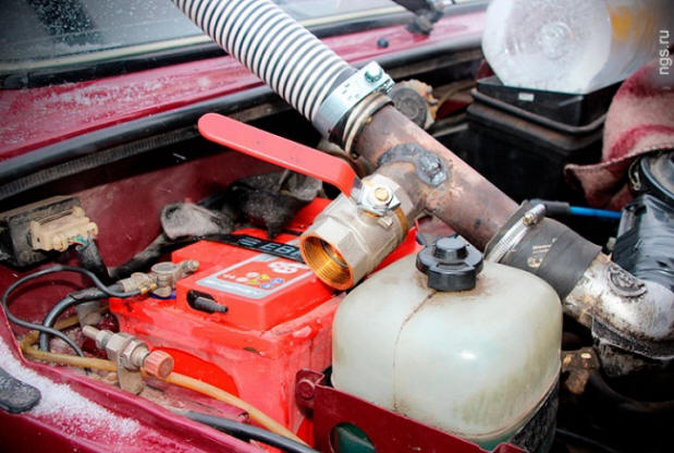 Фото изavoimet lähteet Koneen lämmittämiseksi yksi putki ei riitä: tarvitset päästä poltin ulos. Hänen roolissaan oli kaasupullo, johon Kumiletku ja aseella liekin syöttöön on kytketty putki. Buzeniuksen mukaan viisi minuuttia riittää lämmitys pakkasneste.