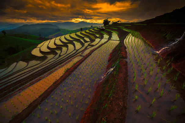 Ihmisen ja luonnon välinen harmonian hämmästyttävä kauneus kentät, mutta ehdoton niiden luonnollisuudessa ja viivojen ja muotojen hienovaraisuudessa. Se, mikä ravitsee satoja tuhansia ihmisiä, on myös mielenosoitus. että ihminen kykenee kohtuullisella ja kunnioittavalla tavalla vastaanottamaan lahjoja maasta tuhoamatta ja tuhoamatta, vaan luomalla ja luomalla kaunis. Tämä on ensinnäkin mielestäni ja näytä seuraavat valokuvat työstä. Ja myös kuinka upea – yksinkertaisten riisinviljelykenttien muodot ja kauneus tämä uskomaton monien ihmisten ponnistus. Värit ovat silmiinpistäviä lajike: turkoosi vihreä, sininen violetti, keltainen kulta ja vain läpinäkyvä …
