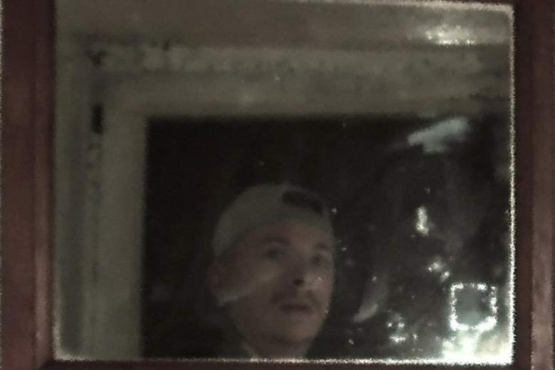 Ghostbuster kertoo olleensa tietyssä hetki lähellä vanhaa peiliä ja näki siinä yhtäkkiä korkean pimeän siluetti takana. Tutkija pelkäsi kääntyä helvetti, mutta onnistui valokuvaamaan sen heijastuksena. päälle alla oleva kuva on nähnyt peloissaan olevan Kylen takana joka seisoo hirvittävän mustan hahmon hupparissa. Onneksi munkin haamu ei vahingoittanut miestä millään tavalla. Kun Thompson on vielä löysi rohkeuden kääntyä, hienovaraisen maailman kotoperäinen kadonnut. Siitä huolimatta hänet oli selvästi painettu pahaenteiseen selfieyn ja kaikkiin Soul Reaper Paranormal -jäsenet ovat yksimielisesti samaa mieltä siitä yksi vaikuttavimmista todisteista jälkielämästä elämästä.