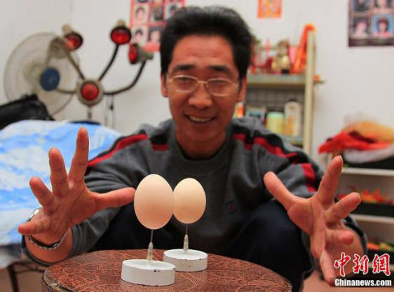 Tsuyu Sugo Changshan kaupungista Kiinassa omistaa maailmanennätys vuonna 2006 hyvin erityinen alue, joka sisältyy Guinnessin ennätyskirjaan, – hän osaa laittaa linnunmunat pienen neulan kärkeen niin, että he eivät pudonnut. Muna voi tasapainottaa neulan kärjessä kuinka paljon mitään pitkää Tsui tekee siitä, kuinka helppo muna on murtaa ilmiömäisiä temppuja.