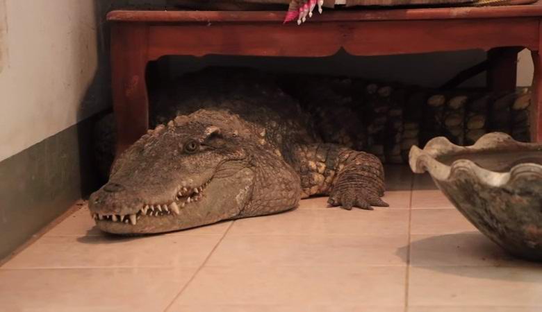 Kanatip Natip, 53, Phitsanulokista, Thaimaa Älä koskaan huolestu siitä, että ryöstö pääsee hänen taloonsa. Jos verkkorikolliset todella yrittävät kamputtaa sen ulos He odottavat ennennäkemättömän yllätys. Tosiasia on, että mies on pitänyt krokotiilia kotonaan kahden vuosikymmenen ajan, joka liikkuu vapaasti kaikkien huoneiden ympäri ja Ilmoitus ilman innostusta viittaa muihin kuin hänen omistaja.