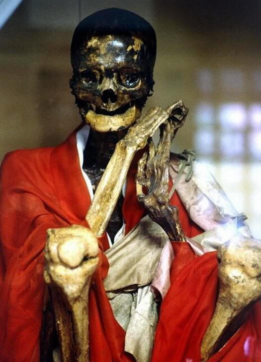 Koko Pohjois-Japanin Yamagata-prefektuurista löytyy noin kaksi tusinaa muumioituneita japanilaisia munkkeja, jotka tunnetaan nimellä Sokushinbutsu, joka aiheutti oman kuolemansa tällä tavalla, mikä johtaa itsemumifikaatioon. Tämä oli ensimmäinen käytäntö. käytti noin tuhat vuotta sitten Kuukai-niminen munkki Mount Koyan temppelikompleksi, Wakayaman prefektuurissa. Kuukai oli buddhalaisen lahkon perustaja Shingon, jonka keskustassa antaa valaistumisen fyysisellä rangaistuksella. onnistunut itsemumifikaatio kesti kymmenen vuotta. Huhujen mukaan satoja munkit yrittivät tavoittaa hänet, mutta toistaiseksi ruumista 16 – 24 heistä.