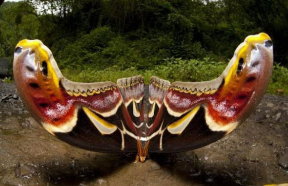 Tämä valtava ja suurin moli maailmassa (kuten joskus on kutsutaan) löytyy trooppisista ja subtrooppisista metsistä Etelä Aasia ja eteläinen Kiina. Heillä on suurin ala minkä tahansa hyönteisen siipien pinta on noin 400 neliö cm. Intia Atlas Moth kasvatti tuottamaan silkkilankaa – he tuottaa ruskeaa silkkiä, joka on vähän kuin villa. naispuolinen Atlasperheet ovat miehiä suurempia ja raskaampia. Naaraiden siipien päät koukussa ja jotkut uskovat hänen siipien näyttävän täydellisiltä käärmepää silmillä, pelastaakseen petoeläimet. Heidän ruumiinsa ovat karvaiset ja pieniä siipiinsä verrattuna. Niiden värit vaihtelevat eri ruskean sävyjä.