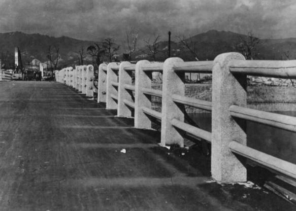 Hiroshimassa räjähdyksen keskiosa putosi Aion-siltaan, missä oli yhdeksän ihmisen varjoja. Mutta ehkä intensiivistä säteily ei vain painanut ihmisten siluetteja pinnalle, vaan kiinni heidän varjoistaan ja jopa sieluistaan, kuten samasta nastaa tai skottinauhaa, ketjutettu ikuisesti kirottuun kaupunkiin.