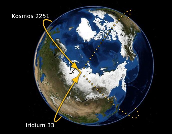 10. helmikuuta 2009 Venäjän Taimyrin niemimaalla ensimmäinen ja tällä hetkellä viimeinen tiedossa keinotekoisten maan satelliittien törmäys. Korkeudessa 788,6 kilometrin kiertolaite “Cosmos-2251”, joka oli Venäjän avaruusvoimien omaisuus, kaatui tietoliikennesatelliittiin “Iridium 33”, jonka omistaa amerikkalainen matkapuhelinoperaattori “Iridium Communications”.