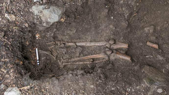 Ensimmäinen versio oli, että se oli eristetty paikka, koska muut arkeologit eivät ole löytäneet läheisiä jäänteitä. sitten tutkijat tutustuivat paikallisen arkiston historiallisiin tietoihin ja sai selville, että aikaisemmin tässä paikassa kirkko sijaitsi ja hautausmaa. Asiantuntijoiden uuden oletuksen mukaan hautausmaa vuonna 2004 heidän aikansa muutettiin tai tuhottiin, mutta yksi luuranko pitkin huolimattomuutta maasta ei poisteta. Pyökki kasvoi oikein jäänteillä, joka antoi heidän olla huomaamatta vuosisatojen ajan.