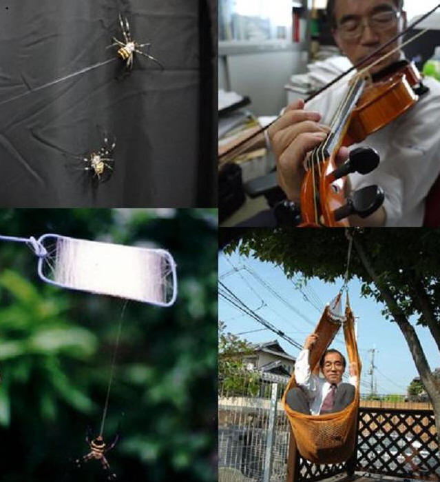 Soitin, jolla on uusia jousia, asiantuntijoiden mukaan osoitti äänen ”pehmeän ja syvän tembron”. jotkut viulistit alkoivat jopa puhua “uudesta musiikista”. Hämähäkkien keksijä Jouset – Shigeyoshi Osaki lääkäriltä Naran yliopisto (Naran lääketieteellinen yliopisto). Tietojen mukaan PhysOrg.com, tämä tutkija, polymeerikemian asiantuntija, 35 vuoden ajan hämähäkkisilkin ja laaja-alaisen tekniikan tutkiminen saada siitä vahvoja ketjuja. Samankaltaiset luonnonkuidut voi olla mielenkiintoinen materiaali vartalohaarniskoille tai kirurgiset ompeleet. Kukaan muu ei kuitenkaan näytä ajatellut tee soittimelle jouset hämähäkkeistä. Osaka ja itse viulua soittaen, hän päätti täyttää tämän aukon.
