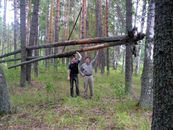 Michiganissa näin henkilökohtaisesti taitettuna tällä tavalla. kuusinauhainen tähti, ja yöllä katselin tämän kuvion alueella joku hehkuvat silmät. Noin samaan aikaan viestit Venäjän alueet: Tšeljabinskin alueen asukas Natalya Puzanova löytää samat mallit paikallisesta metsästä.